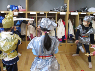 衣装を着て、劇のストーリーに沿ったごっこ遊びを繰り返し楽しんでいます。